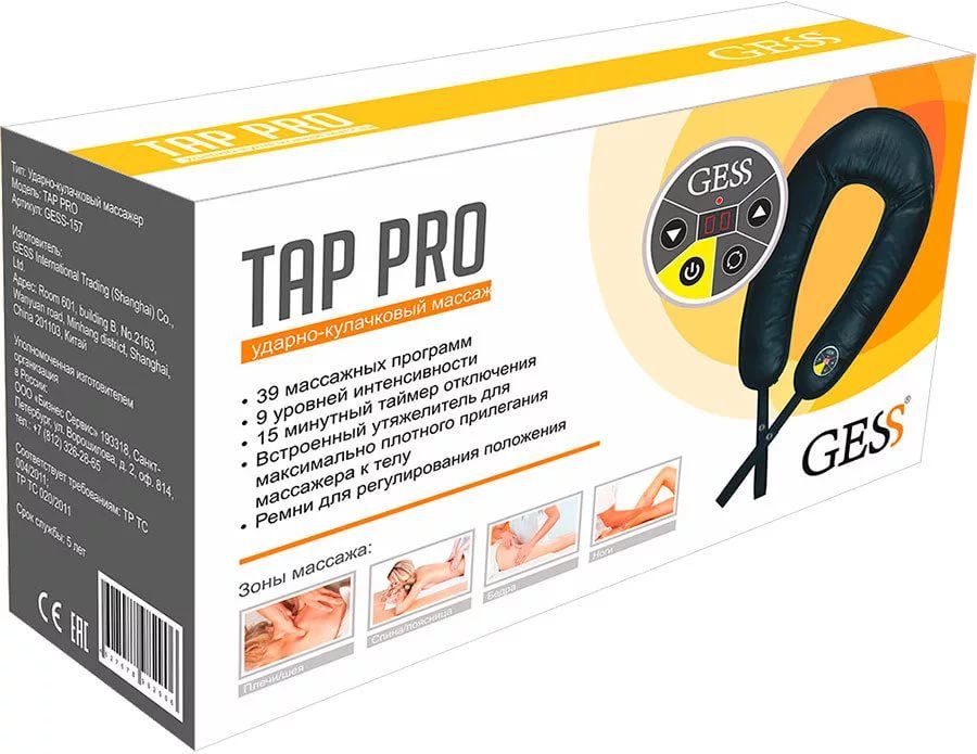 Ударно-кулачковый массажер Tap Pro — многофункциональный массажер, снимающий напряжение и усталость в спине, шее, пояснице, бедрах и ногах благодаря специально разработанным 39 программам постукивающего и комбинированного массажа.