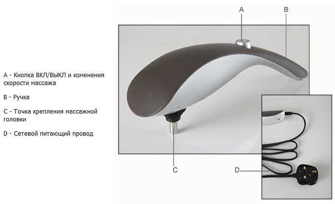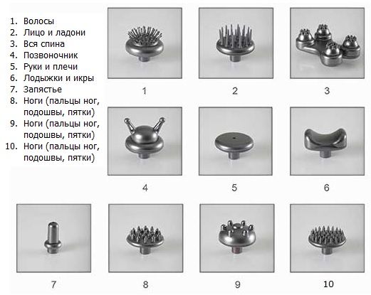 - Десять сменных массажных головок оказывают направленное воздействие на определенные группы мышц
