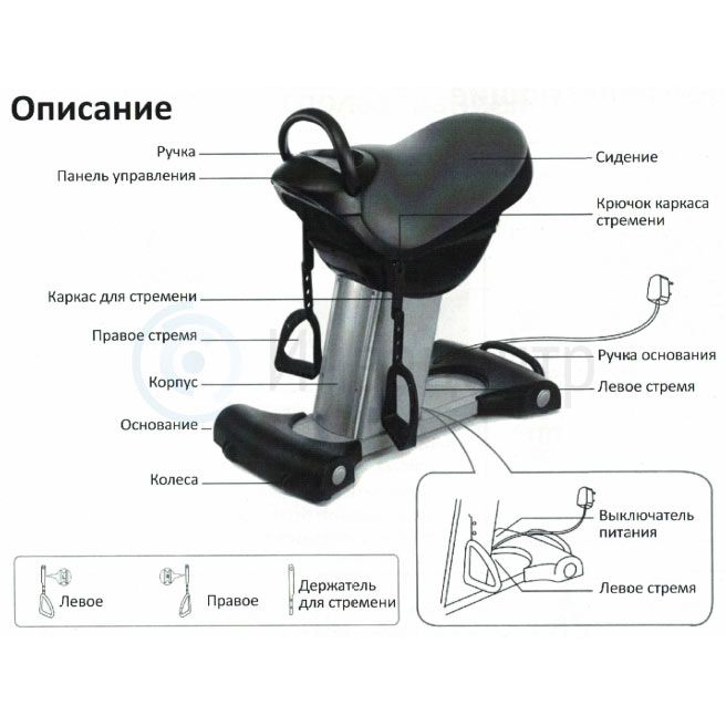 - Имеет два стремени. Надежная опора для ног во время тренировок. Точная имитация верховой езды. Не требует особых усилий