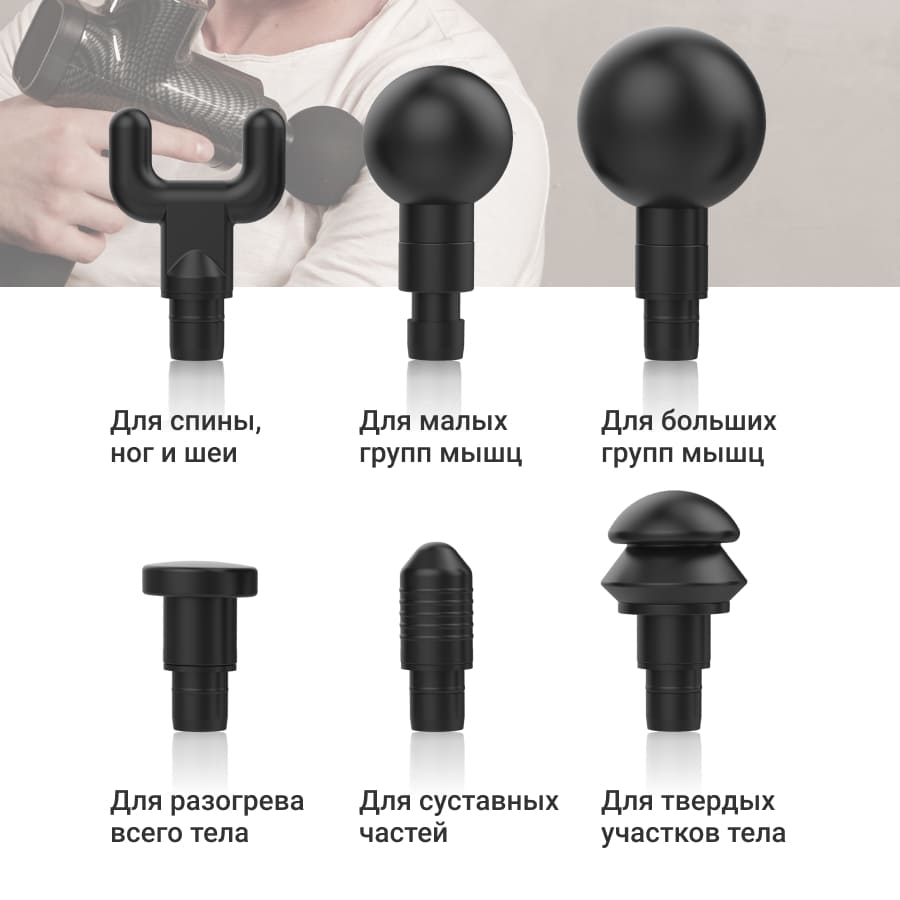 • 6 различных насадок для разных групп мышц