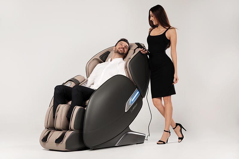 Кресло AlphaSonic 2 оборудовано двумя динамиками и функцией синхронизации с мобильными устройствами. Подключите свой смартфон к креслу и слушайте любимую музыку во время сеанса массажа.