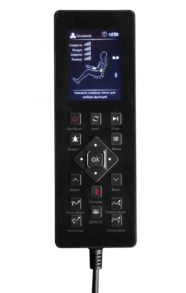 • Пульт на русском языке и понятное меню позволяют легко разобраться в настройках и управлять массажным креслом.