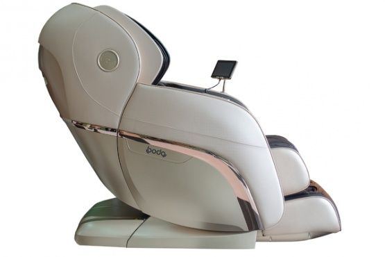Очень современное массажное кресло. В дизайне корпуса использованы космические мотивы. Обтекаемые детали, светлого цвета, при немаленьких размерах оно просто парит в воздухе! Массажный механизм в массажном кресле Bodo Excellence делает не только привычные элементы массажа — разминание, постукивание, Шиацу, но и скручивающие движения, глубокий массаж трапециевидной мышцы, имитируя разминание руками. Кресло выполняет 3 D и 4D массаж. Массажный механизм, проходя по удлиненной L-образной каретке, идеально повторяет изгибы тела, обеспечивая тщательный и глубокий роликовый массаж шеи, плеч, поясницы и ягодиц. В нижней части каретки ход роликов в глубину составляет 10 см, в верхней — 7 см. Все современные технологии можно найти в этом кресле. Массажное кресло имеет функцию тестирования здоровья, в процессе выполнения которого на экране дисплея отображается частота сердечного ритма, данные о насыщении крови кислородом (сатурация), данные о микроциркуляции. По результатам тестирования создается отчет о проверке здоровья с комментариями и рекомендациями. Очень удобный и понятный 7-ми дюймовый сенсорный пульт управления. Панель управления быстрого доступа в подлокотнике позволяет без лишних движений во время массажа скорректировать программу!