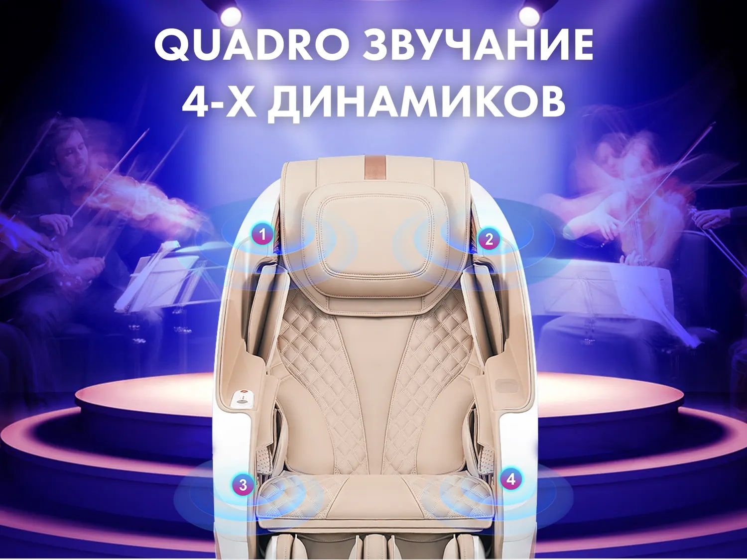 Четыре акустических динамика системы Quadro Music Surround создают кристально чистое звуковое сопровождение массажа.
