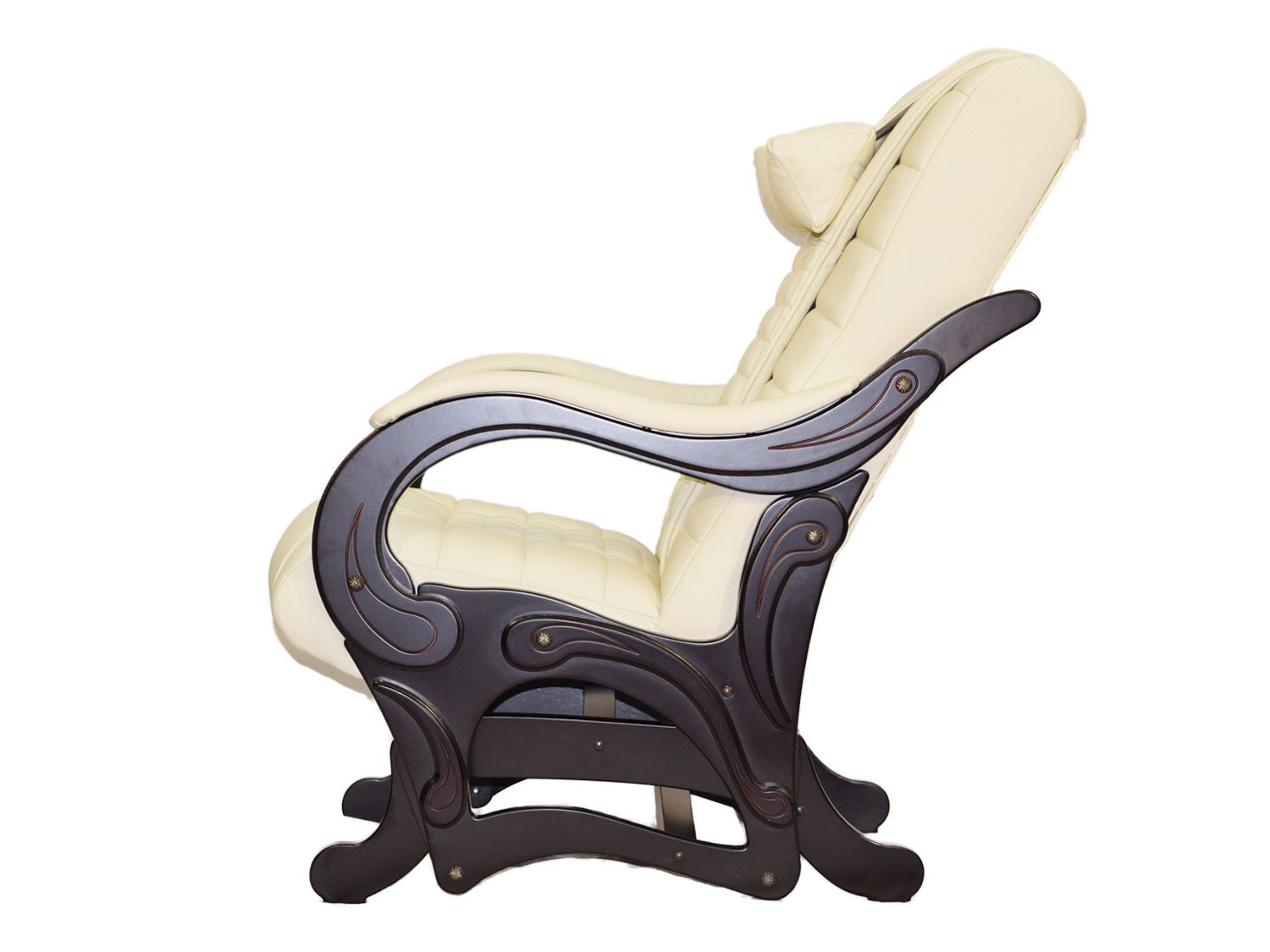 В первую очередь, это комфортное кресло-глайдер с маятниковым механизмом раскачивания, выполненное в классическом стиле, с элементами кожи и дерева. Во-вторых, это удобное массажное кресло, имеющее три вида массажа и функцию прогрева массажных роликов. Это гармоничное слияние позволяет достичь нового уровня комфорта.