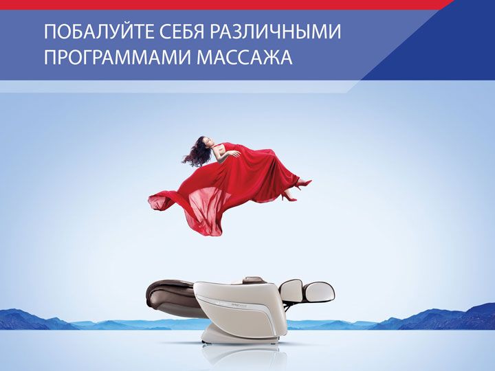 Программа чувственного воздействия реализует массаж всего тела, максимально приближенный к прикосновению человеческих рук, который использует технологию Тройной S- траектории и выполняется в ультра-комфортном лежачем положении под углом 160° и 180°. Это позволяет получить настоящее наслаждение от реального массажного воздействия, охватывающего области шеи, спины и далее, вплоть до зоны ягодиц.