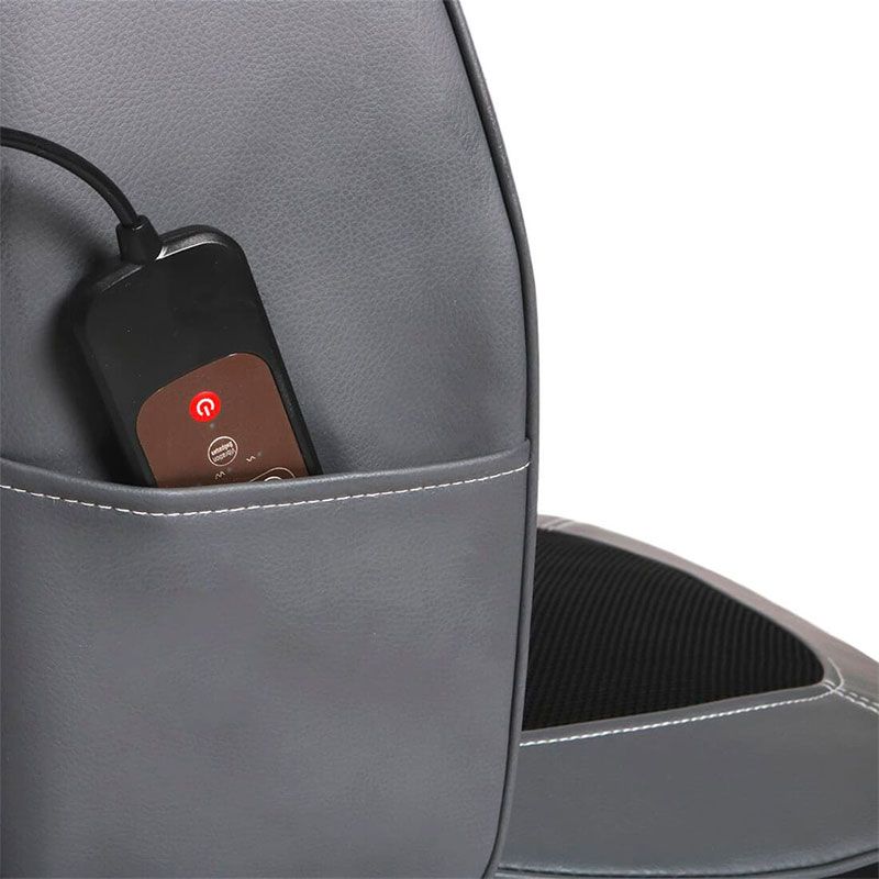 Плечевой пояс чутко прорабатывается регулируемой по высоте и наклону насадке.Инфракрасный прогрев роликов способствует улучшению кровообращения и глубокой проработке мышц. Нижняя часть накидки осуществляет вибромассаж ягодиц, помогающий избавиться от проявлений целлюлита, а также снимает напряжение с копчика, что особенно полезно для людей, ведущих сидячий образ жизни.