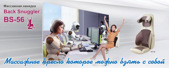 Представляем Вам новое средство для отдыха, остров релаксации, на который не нужно покупать билет. Окунувшись в объятия новой массажной накидки OTO BACK Snuggler BS -56, Вы ощутите полноценное расслабление и комфорт, забудете невзгоды повседневной жизни и почувствуете настоящее облегчение. Для этого компания ОТО предприняла новые шаги, применив новые технологические решения.