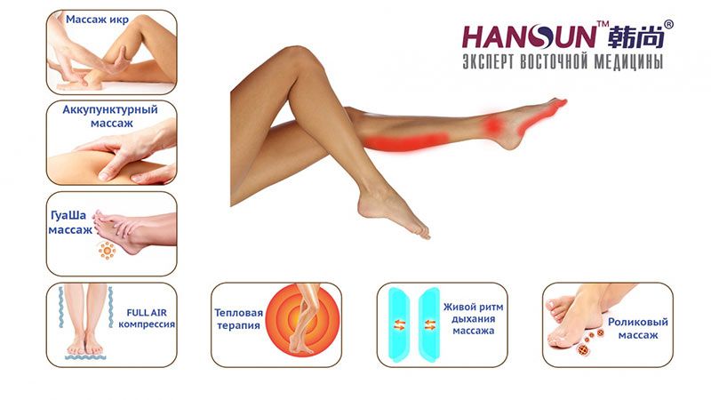 Массажная компрессионная терапия стимулирует акупунктурные точки, расположенные не только на поверхности кожи ног но и в подкожной области. На начальном этапе применения компрессионного массажа может возникнуть некоторый дискомфорт, вызванный напряжением уставших мышц, особенно в чувствительных зонах. Но по мере продолжения массажа это ощущение проходит и рефлексотерапия ног становится более комфортной.