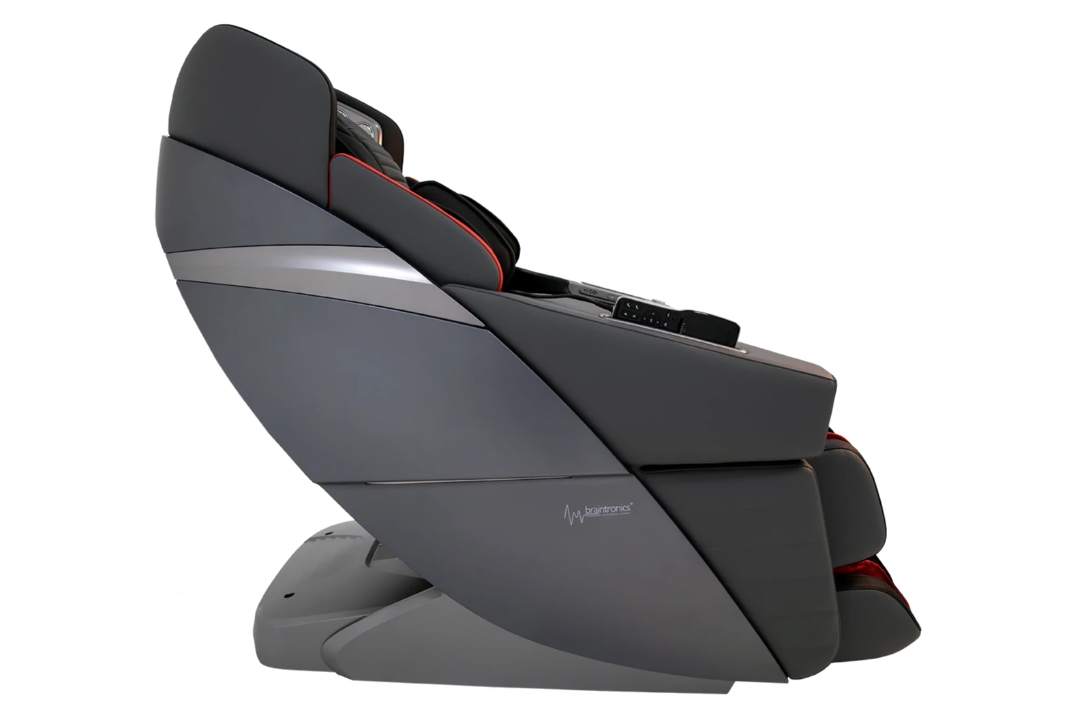 Braintronics – новейший способ борьбы со стрессом. Это уникальная анти-стресс система, которая использует принцип бинауральных ритмов в своих авторских мелодиях. Эти мелодии оказывают воздействие на мозг человека, в то время, как кресло осуществляет роликовый и воздушно-компрессионный массаж. Массаж мозга