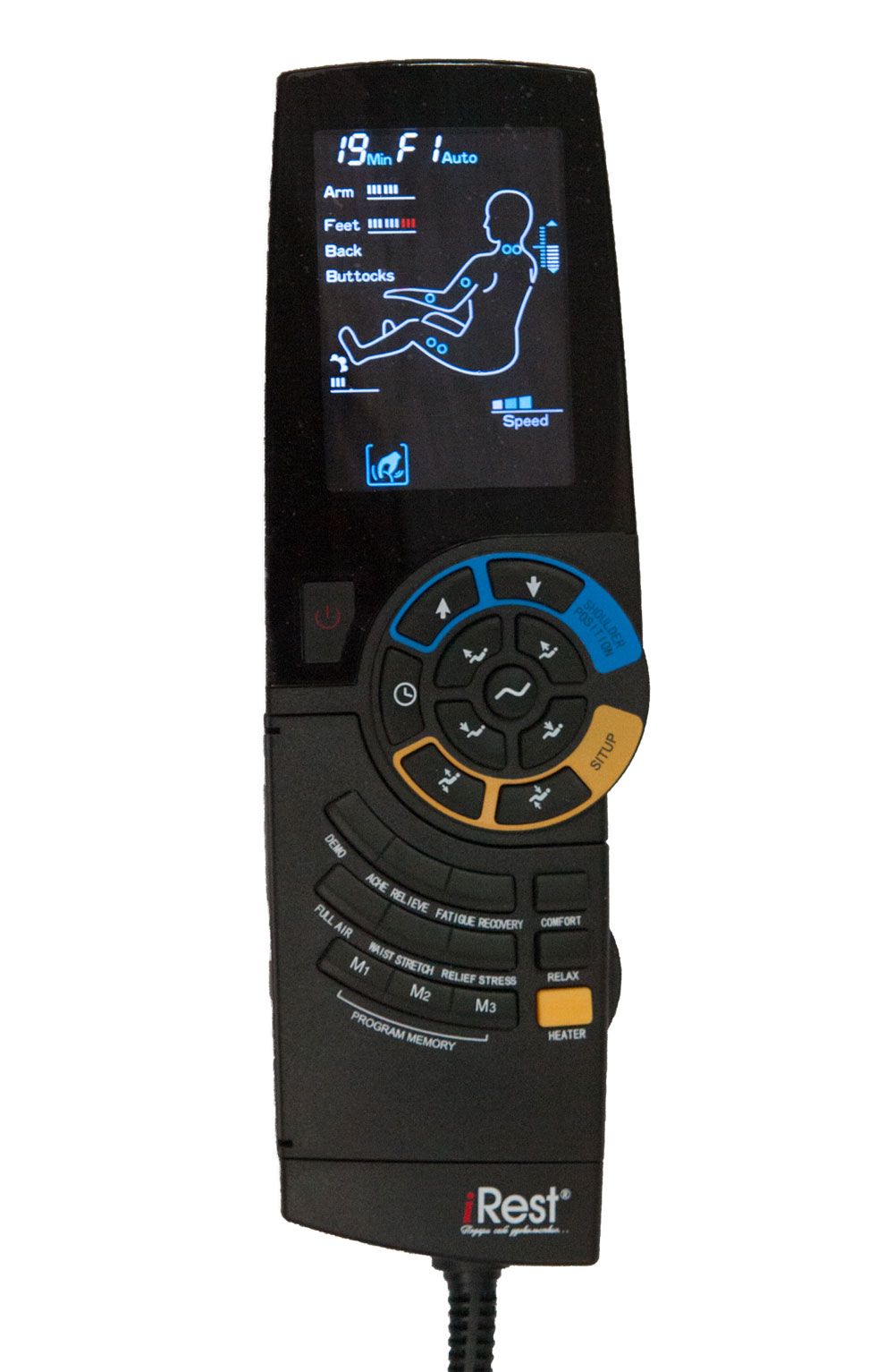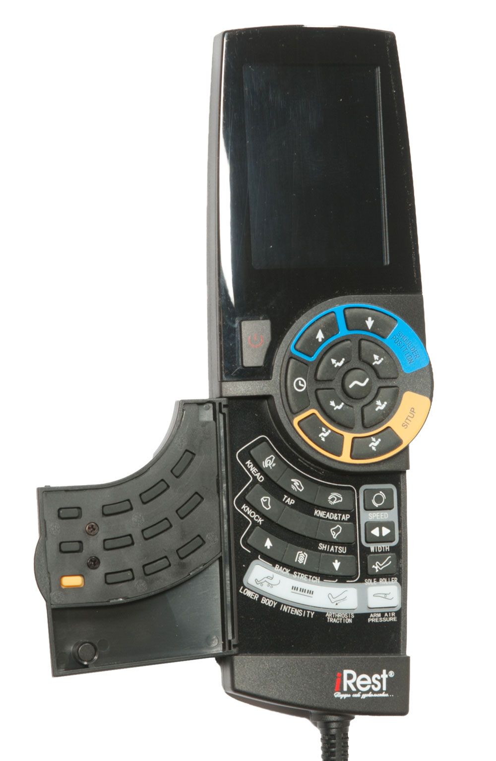 Массажное кресло SL-A86 ⋆⋆⋆⋆⋆ имеет два пульта управление. Основной интеллектуально понятный пульт имеет LCD дисплей. Экспресс пульт, расположенный в боковине массажного кресла, позволяет регулировать положение, не прерывая сеанс.