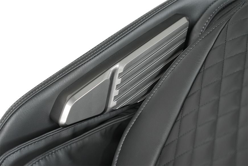 Наряду с разнообразными настройками : регулируемая подножка, настройка длины каретки и интенсивности массажа, углеродного инфракрасного прогрева, удобного пульта управления, в данном кресле есть такие особенности как - регулируемый массаж стоп - сочетание роликового массажа и поколачивания -регулировка интенсивности компрессионного массажа - проминание проблемных областей в одной точке