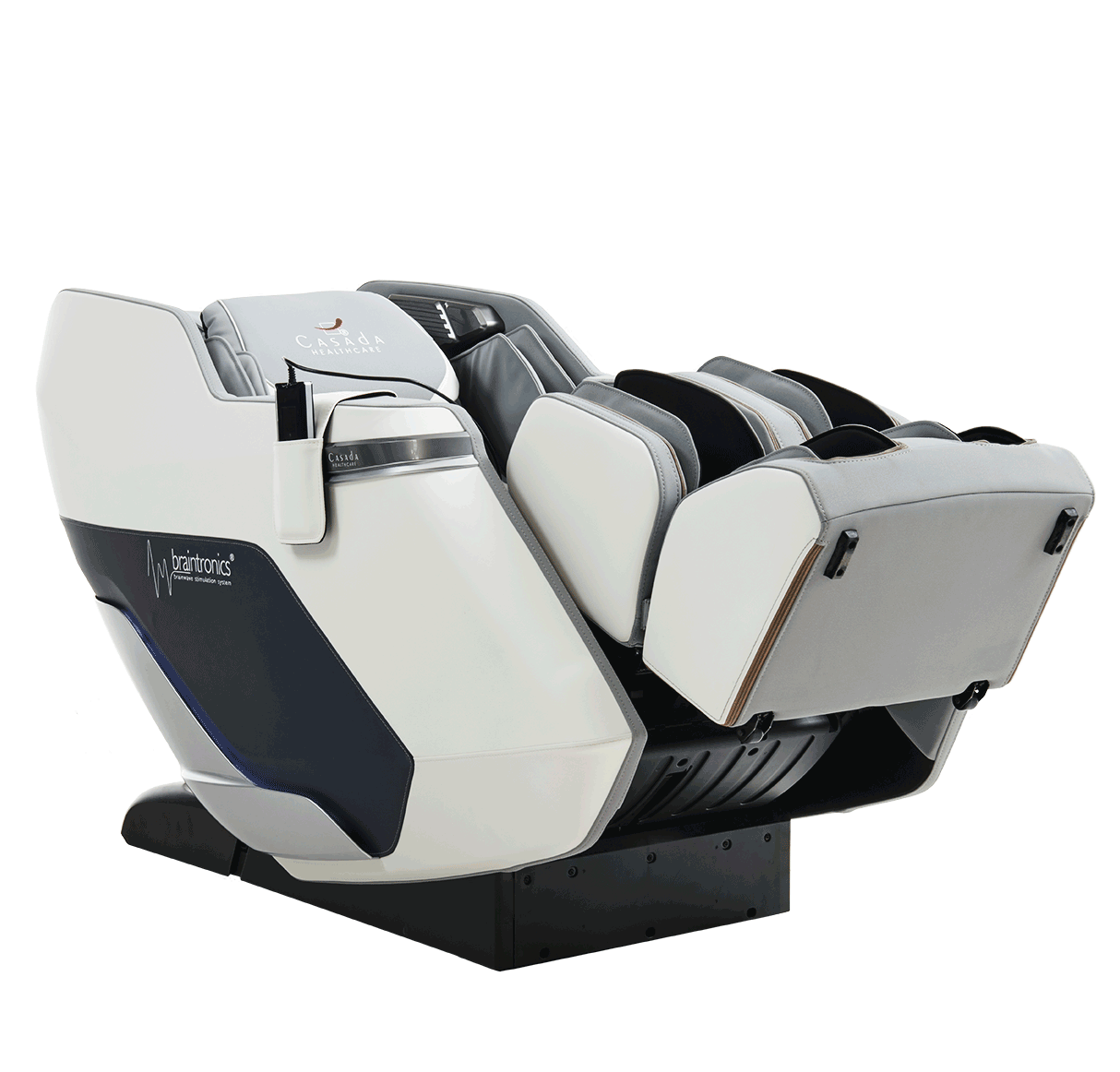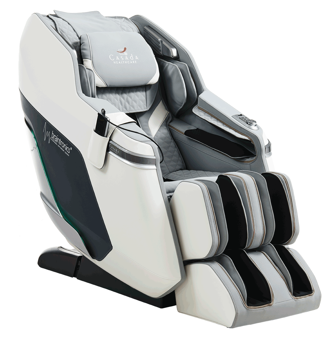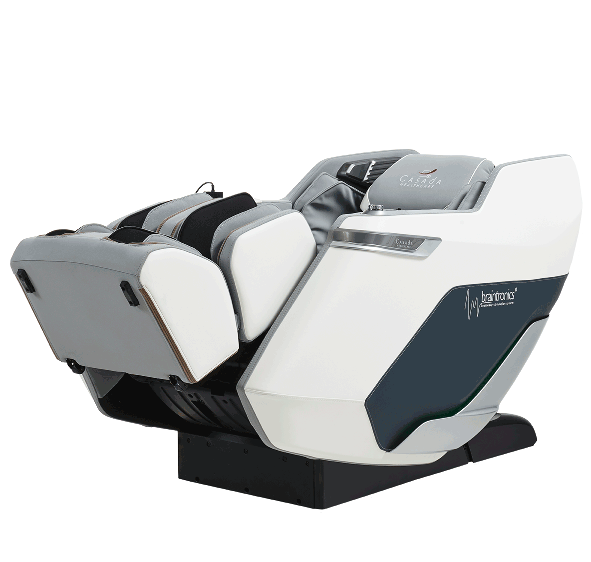 В массажное кресла Casada Pollux предусмотрен восстанавливающий массаж икр, стоп и голеней, а также мягкий инфракрасный прогрев коленей, икр и голеней в сочетании с качественным роликовым массажем.