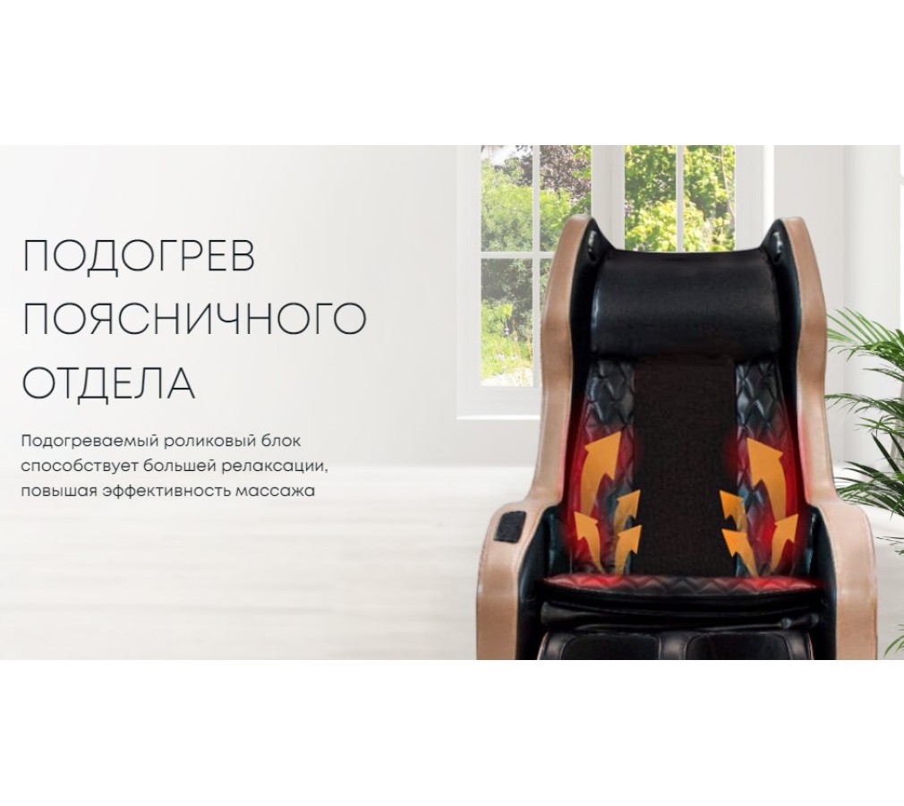 Помимо всего этого, имеется функция подогрева всего тела, ног и стоп. Тепло способствует усилению эффекта массажа и обеспечивает дополнительное расслабление.