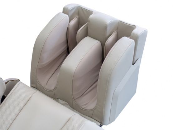 Уникальная конфигурация роликов позволяет делать сложный (для других моделей кресел) массаж ног, вытягивающий и освобождающий от чувства скованности в ногах - от свода стопы до внешней стороны стопы, расслабляя мышцы. Воздушные подушки, надавливая - имитируют руки массажиста. ИК-прогрев улучшит циркуляцию крови.