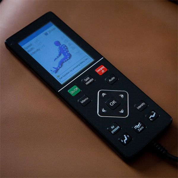 - 38 воздушных подушек, расположенных по всей поверхности кресла, в том числе 12 компрессионных подушек для массажа рук, начиная от кончиков пальцев и заканчивая локтями и 14 подушек для массажа ног - стоп щиколоток и голеней
