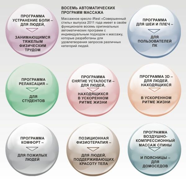 Изделие оснащено пятью встроенными массажными программами: