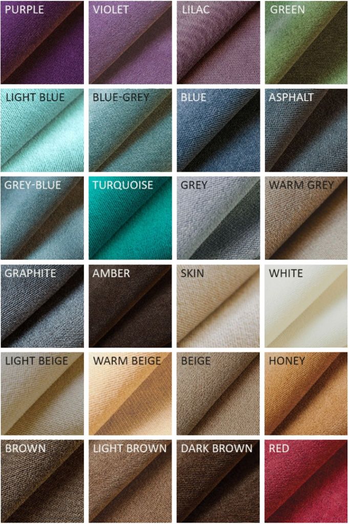 Вы можете выбрать один из множества цветов и материалов обивки:
