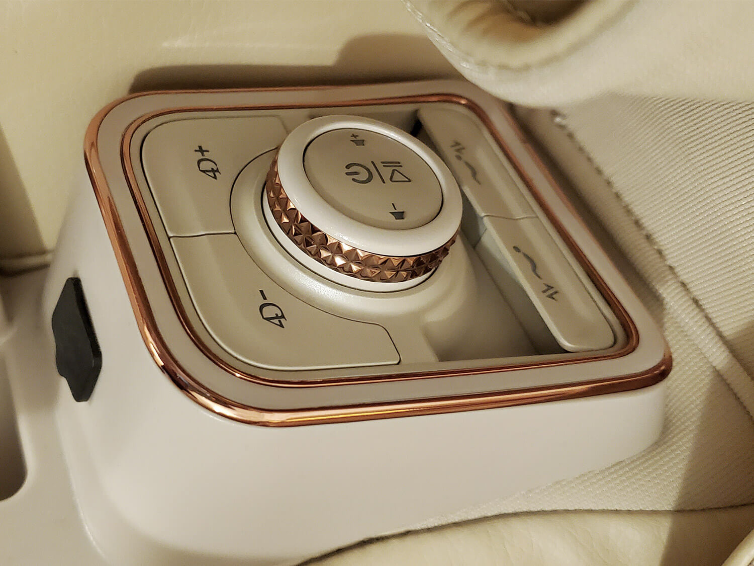 - На левом подлокотнике расположена беспроводная зарядка, а также зарядное устройство USB 2А;